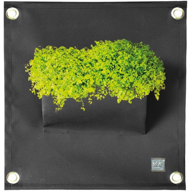 Díky čtyřem nerezovým okům lze kapsář pěkně vypnout a je tedy velmi stabilní. Podle velikosti daného místa si můžete pospojovat nekonečné množství kapsářů, různých barevných kombinací nebo jednobarevné a využít prostory kapes nejen na květiny.