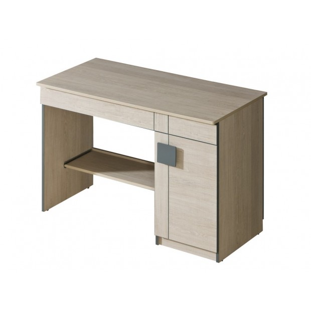 Pracovní stůl ze sektorové řady ANICETO. Úchyty jsou vyrobeny z plastu v netradičním tvaru, které si děti zamilují. Barevné provedení je dub santana, úchyty a dekorace nabízí možnost výběru - červená, hnědá nebo šedá. Úložný prostor obsahuje polici ( viz perokresba). Nábytek je vyrobený z kvalitní laminátové desky. Za zmíňku stojí i cenová výhodnost nábytku. Sestava ANICETO se skládá z 18 prvků a tento široký výběr vám zaručí si sestavit nábytek podle svých představ. Dodáváme v demontovaném stavu. Šířka: 110 Výška: 79 Délka: 55 Váha: 43.0000 Barva: Dub Výchozí barva: dub santana Materiál: LTD