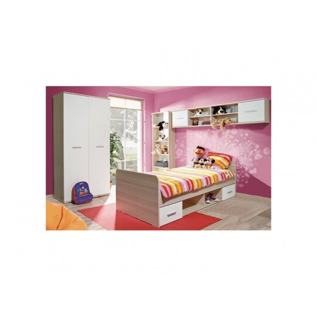 Praktický nábytek do dětského pokoje vhodný jak pro holky, tak i kluky. Barvy jsou neutrální, jedná se o žlutý javor v kombinaci s matnou bílou barvou. Nábytek je vyroben z kvalitního laminátu. Tato dětská sestava se skládá ze 4 dílů - postel ( bez roštu a matrace - možnost doobjednání ) 204/96/62 cm, ( vhodná matrace 90 x 200 cm ), šatní skříň 90/55/191 cm ( v jedné polovině jsou 3 police, v druhé šatní tyč ), police 204/24,5/39 cm a regál 59/24,5/176 cm. Rozměry jsou udány v tomto pořadí - šířka/hloubka/výška. Postel obsahuje 2 praktické zásuvky, které jsou jen z jedné strany, nosnost postele je do 150 kg a výška roštu nad zemí je 35 cm. Rošt není v ceně sestavy. Sestavu lze koupit pouze celou, jednotlivé díly nelze koupit zvlášť. Dodáváme v demontovaném stavu. Váha: 110.0000 Barva: Javor Výchozí barva: žlutý javor/bílá Materiál: LTD
