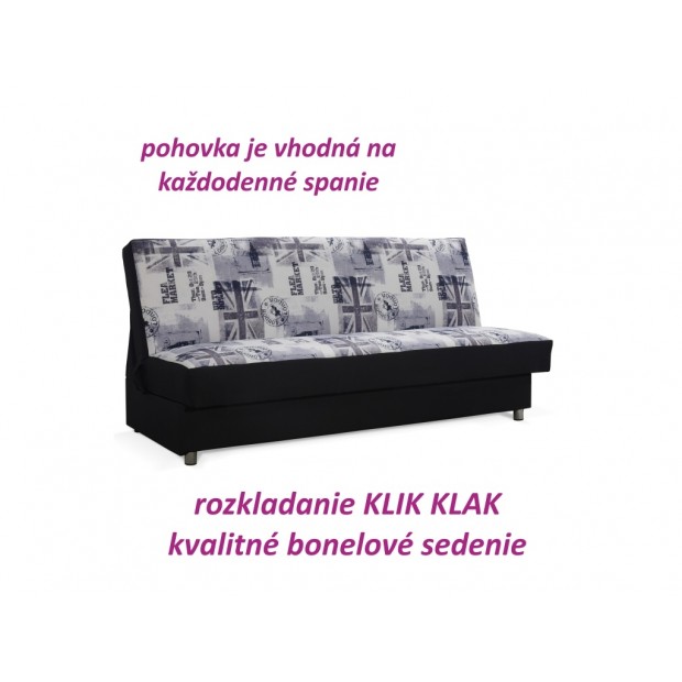 Pohovka, rozkládací s úložným prostorem, látka černá / vzor šedá, Lazaa