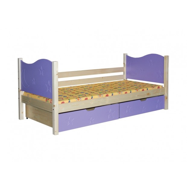 Postel OWEN 444 Materiál: masiv smrk s povrchovou úpravou, čelo MDF s povrchovou úpravou Cena včetně zásuvek, matrace a laťkového roštu. Rozměry: d: 210cm, š: 98cm, v: 80cm Matrace má snímatelný potah, rozměr matrace je 90x200cm, výška 8cm. Postel lze objednat i bez matrace. Za příplatek 5% z ceny je možné vyrobit postel jiné barevné kombinace než je uvedeno ve vzorníku.