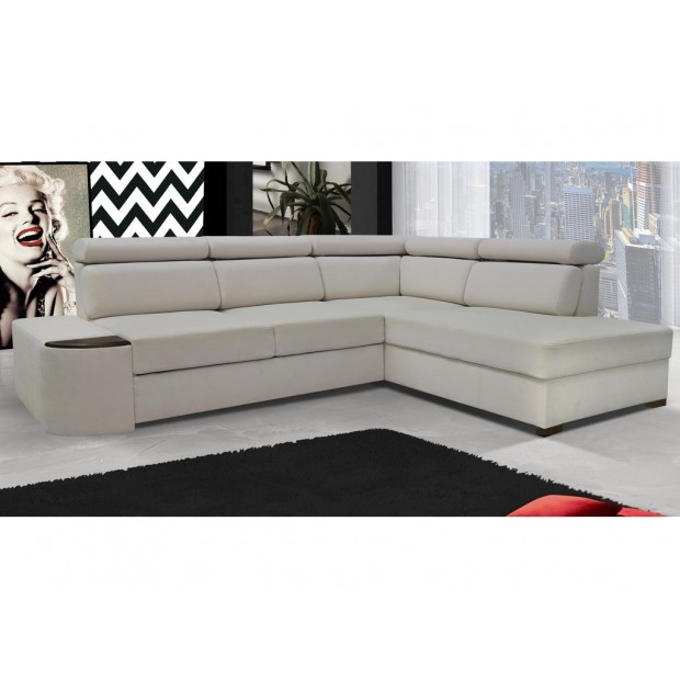 Praktická celo-čalouněná rohová sedačka. Netradiční a velmi moderní vzhled. Sedačka obsahuje úložný prostor a prostor na příležitostní spaní. Po rozložení je spací plocha 195 x 130 cm. Rozklad je snadný, vysune se vozík s matrací do přední části. Je třeba si vybrat, zda si přejete u sedačky roh napravo nebo nalevo. Pohodlné sezení zaručují vlnovcové pružiny s PUR pěnou. Velkou výhodou sedačky jsou i polohovatelné záhlavníky a široký výběr barev potahu. Sedačka má dřevěné nožky a praktický odkládací tác s výběrem moření ( viz barva ).. Šířka: 265 Délka: 210 Váha: 140.0000 Materiál: dřevo / masív, ekokůže, látka