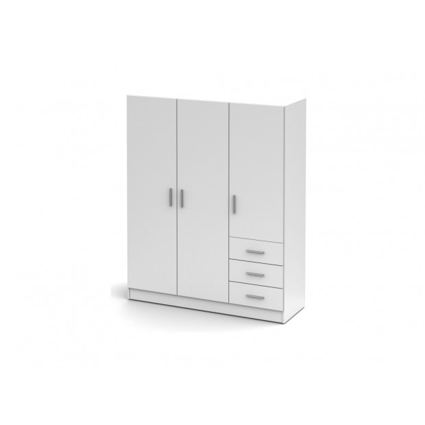 Skříň třídveřová se třemi zásuvkami, materiál: DTD laminovaná, barevné provedení: bílá, rozměry ŠxVxH: 143,4x175x49,4 cm, dodáváno v demontu.