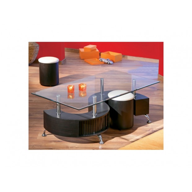 konferenční stollík se dvěma taburetkami, barevné provedení: ořech / ekokůže bílá + sklo - tvrzené 8 mm. Rozměry stůl ŠxHxV: 130x70x45 cm. Dodáváno v demontu.