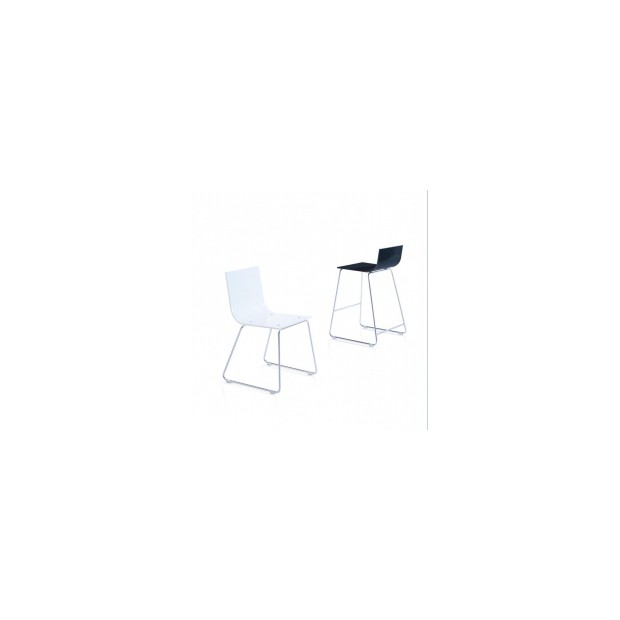 Modelní barová židle s plastovou skořepinou a ocelovou kostrou